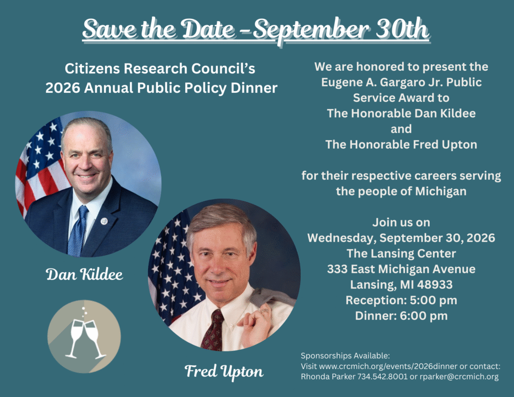 This year, Citizens Research Council is delighted to honor two exceptional individuals with the prestigious Eugene A. Gargaro Public Service Award in recognition of his public service and commitment to civic engagement: Former U.S. Representatives Dan Kildee and Fred Upton of Michigan.