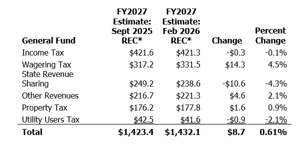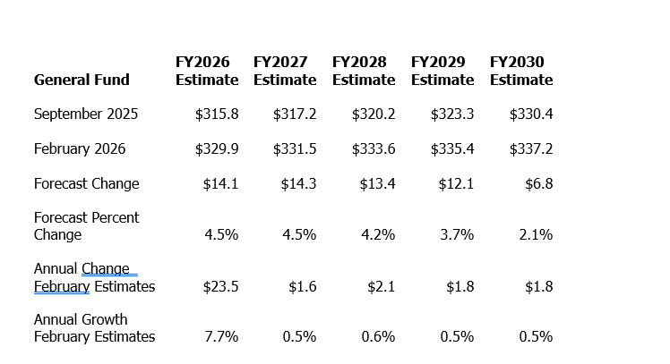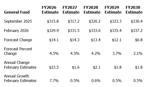 Source: February 2026 Revenue Estimating Conference