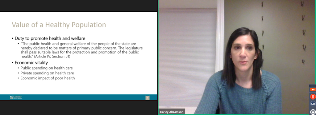 - Policymakers should invest in making changes that work toward a healthier Michigan. The health of the population directly affects many other government goals spanning virtually every policy area.