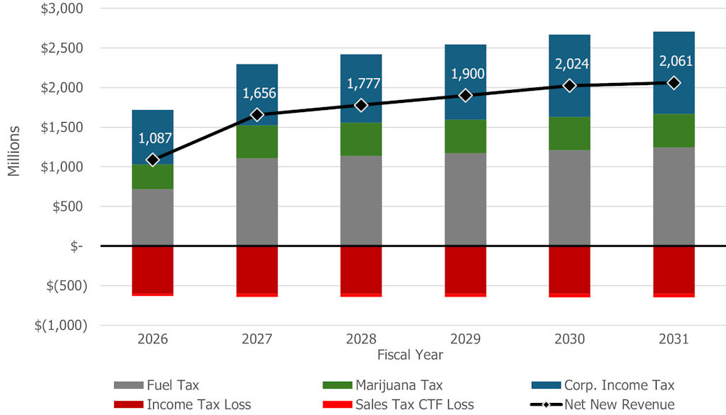 Estimated Revenue Impact of 2025 Transportation Funding Package, FY2026 to FY2031